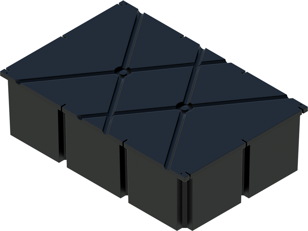 DockBuilders Permafloat dock floats are a one-piece rotationally molded part, which eliminates seams than could result in separation and leakage. The .150" nominal thick shell is made of extra strong virgin polyethylene containing ultraviolet inhibitors. This tough shell helps prevent damage from the sun, salt water, fresh water, debris, oil, gas, and marine organisms.