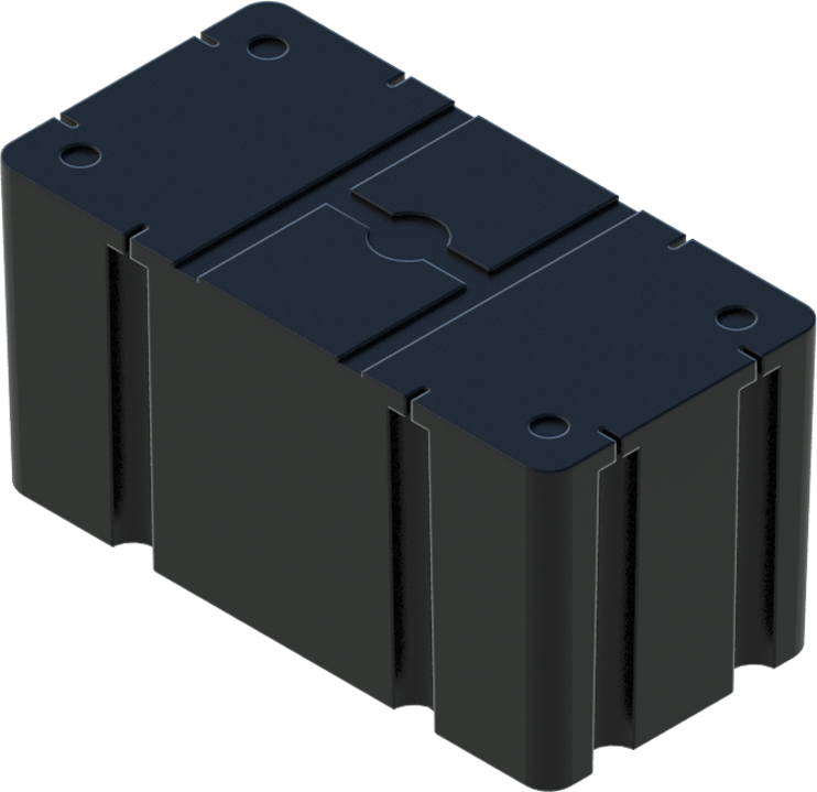 DPI dock floats are durable, high-quality floats that are ideal for new and existing dock systems. Our floats have a flat top with molded-in mounting slots for easy attachment to any dock framework; whether wood, steel, or aluminum. They are a one-piece rotationally molded part, which eliminates seams than could result in separation and leakage. The .150" nominal thick shell is made of extra strong virgin polyethylene containing ultraviolet inhibitors. This tough shell helps prevent damage from the sun, salt water, fresh water, debris, oil, gas, and marine organisms. The interior of the float is filled with expanded polystyrene (EPS) foam.