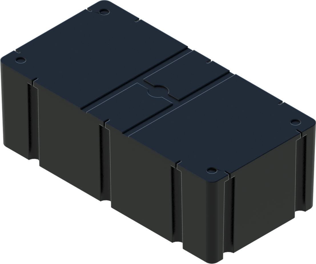 DPI dock floats are durable, high-quality floats that are ideal for new and existing dock systems. Our floats have a flat top with molded-in mounting slots for easy attachment to any dock framework; whether wood, steel, or aluminum. They are a one-piece rotationally molded part, which eliminates seams than could result in separation and leakage. The .150" nominal thick shell is made of extra strong virgin polyethylene containing ultraviolet inhibitors. This tough shell helps prevent damage from the sun, salt water, fresh water, debris, oil, gas, and marine organisms. The interior of the float is filled with expanded polystyrene (EPS) foam.