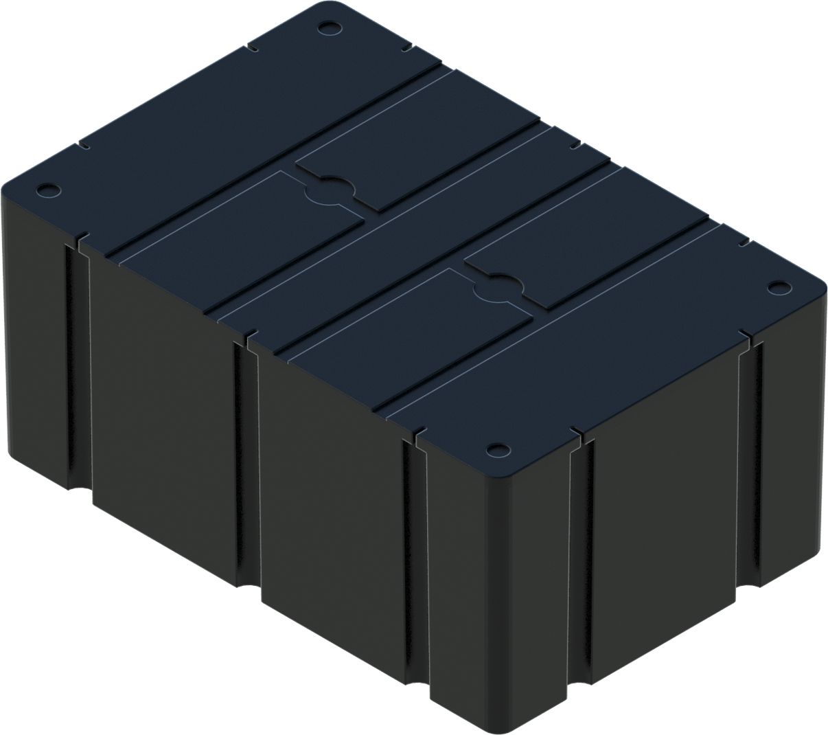 DPI dock floats are durable, high-quality floats that are ideal for new and existing dock systems. Our floats have a flat top with molded-in mounting slots for easy attachment to any dock framework; whether wood, steel, or aluminum. They are a one-piece rotationally molded part, which eliminates seams than could result in separation and leakage. The .150" nominal thick shell is made of extra strong virgin polyethylene containing ultraviolet inhibitors. This tough shell helps prevent damage from the sun, salt water, fresh water, debris, oil, gas, and marine organisms. The interior of the float is filled with expanded polystyrene (EPS) foam.