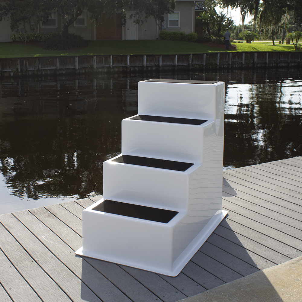 Fiberglass Dock Stairs - 4 Steps with Handrail on Right
