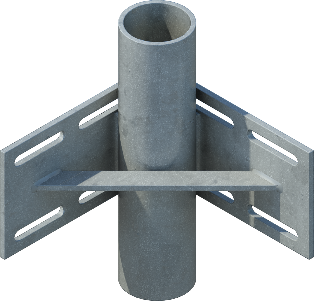 Inside Corner with 3" x 12" pipe. Accommodates 2" steel pipe to hold dock in place. Install using 1/2" carriage bolts. Corner bracket is 1/4" Thick HDG.