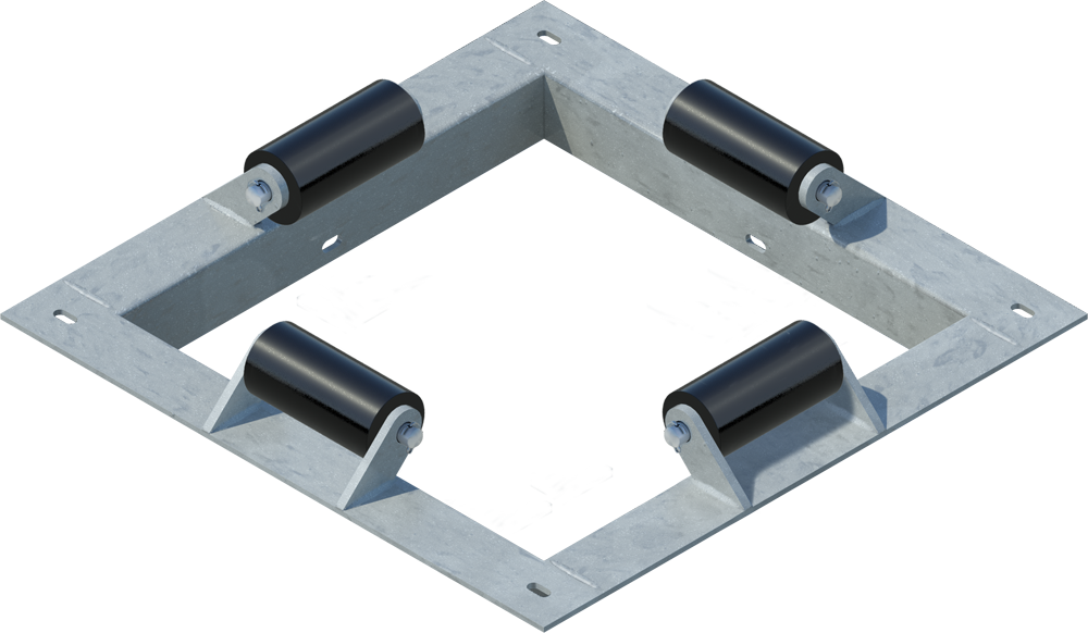 This 18" internal piling guide includes 4 UHMW rollers. Designed for use with 14" to 16" diameter piling. Install using 1/2" carriage bolts.