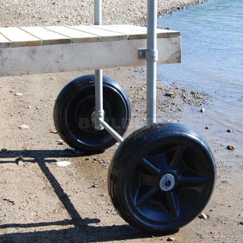Plastic dock wheels are designed for roll-in docks and boat lifts. Made of UV stabilized heavy duty, rotomolded polyethylene. Large diameter rolls easily on all terrains. Designed for maximum strength with no maintenance requirements. Pre drilled with drain holes. Fits axle sizes 1.60" to 1.90" diameter.